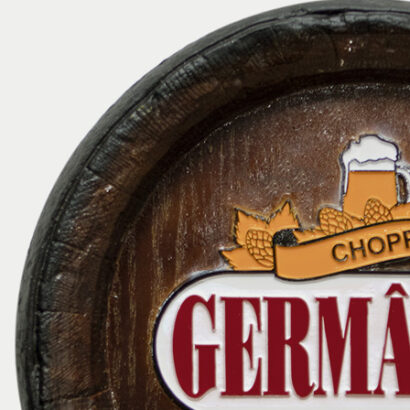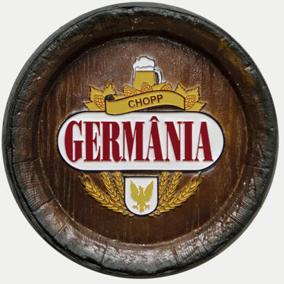 Barril decorativo. O Barril decorativo é confeccionado em fibra de vidro, simula de forma realista uma tampa de um barril de madeira de carvalho. Essa peça é ideal para decoração de bares, churrasqueiras, espaço Gourmet, salão de festas e decoração em casa.